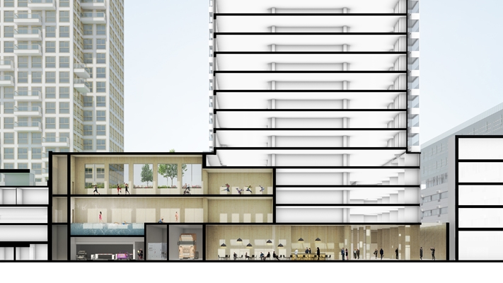“We kijken niet waar nu de teller voor de hoogte staat”, zegt Brouwer. “Maar we zijn wel blij dat er nu een kwaliteitsslag is gemaakt met de beslissing dat er een publieke functie in de toren komt. Met een uitkijkplatform en horeca op hoogte en daaraan gerelateerde publieke functie in de plint kunnen we de stad iets teruggeven. Dat is mooi om te ontwerpen en dankbaar om te doen.”