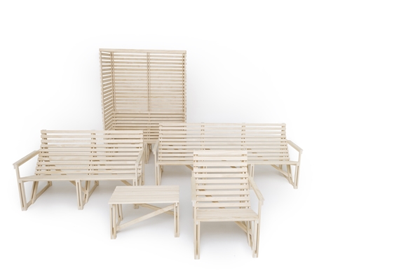 een serie van vijf buitenmeubels ontworpen. Het meubilair, krachtig in zijn eenvoud, is gemaakt uit duurzaam Accoya-hout.