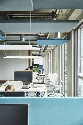 Kleurcoderingen helpen gebruikers en bezoekers hun weg te vinden door het gebouw. De kleuren geven bijvoorbeeld de weg aan naar geschikte plekken voor een creatieve brainstorm, een persoonlijk overleg of werkzaamheden die grote concentratie vergen.