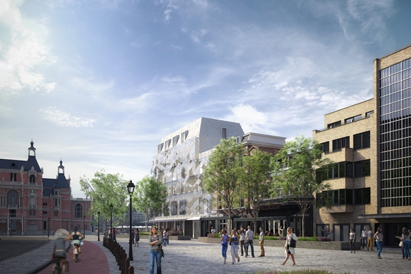 is verantwoordelijk voor het ontwerp van de nieuwbouw, die er in het eerste kwartaal van 2018 moet staan. Qua hoogte sluit het gebouw aan op de omringende bebouwing. Volgens het plan wordt de horeca verdeeld over de kelder, de begane grond en de eerste verdieping. De zes verdiepingen erboven zijn gereserveerd voor een viersterrenhotel.
