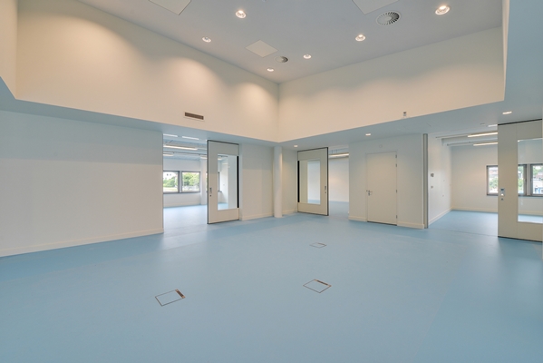 Het kinderdagverblijf, de peuterspeelzaal en de basisschool vormen een doorlopende leerlijn die ook in ruimtelijke zin terugkomt in het gebouw. De onderbouw, middenbouw en bovenbouw zijn met hun lokalen steeds gegroepeerd rond een leerplein. Brede schuifdeuren verbinden de lokalen daarbij met de leerpleinen. Op die manier kan overal individueel, in groepjes of klassikaal lesgegeven worden.