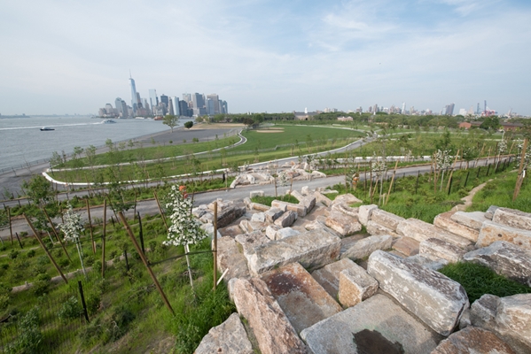 , bestaande uit hergebruikte granieten blokken van een zeewering. Vanzelfsprekend heeft de bezoeker vanaf deze heuvel de mooiste uitzichten op de haven en de skylines van Manhattan, Brooklyn en Jersey City.
