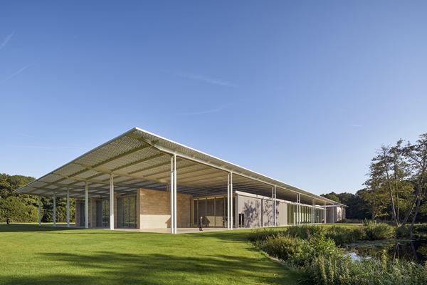 “Dankzij deze bijzondere uitvoering is zowel de gevel als het dak optimaal transparant”, stelt Kraaijvanger Architects. De glazen gevel is niet alleen een keuze voor optimalisering van het daglicht, maar ook voor een nauwe relatie met het omliggende landgoed.