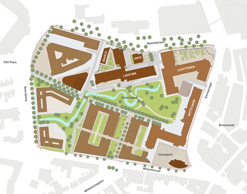 De oplevering van Lighting is de eerste en belangrijkste stap in de realisatie van het Victoriapark. Daarbij geeft diederendirrix vorm aan de herontwikkeling van het hele terrein rond Philips Lighting. Aan de noordzijde van het gebouw, aan de doorgaande weg, komt de woontoren Onyx met luxeappartementen en een vijflaags gebouw met studentenwoningen. Door deze verdichting kan aan de zuidzijde van het terrein het Victoriapark van 3,5 hectare worden gerealiseerd, waarin straks de Genderbeek weer zal stromen.