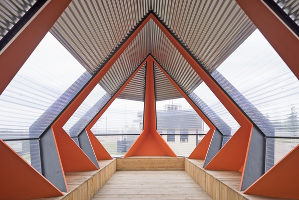 een verplaatsbaar paviljoen ontworpen. KAPKAR/SF – P7S staat prominent op BouwLab, een proefveld voor ontwikkelingen in wonen, in Nijmegen.