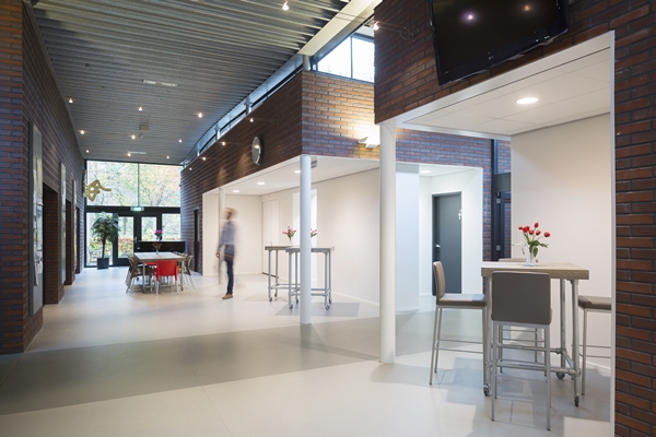 In het bestaande sociaal-cultureel centrum heeft het architectenbureau beperkt, maar gericht ingegrepen. De smalle foyer is vergroot en de toegankelijkheid en uitstraling van ruimtes is aangepakt. Daarnaast is de oudbouw zoveel mogelijk geschikt gemaakt voor dubbelgebruik.