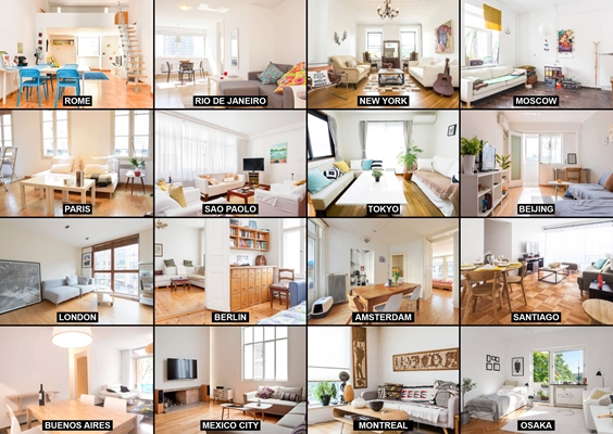 Van Buenos Aires tot Tokio, overal worden kamers met dezelfde witte muren en vloeren met houtdessin aangeboden. Volgens Pestellini is dit het gevolg van de manier waarop het platform in elkaar steekt; een optelsom van