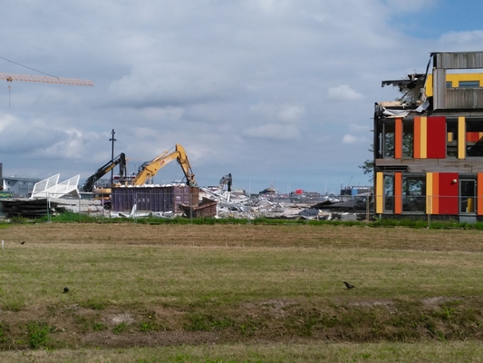 Toch ging het schoolgebouw onlangs tegen de vlakte. Modulair bouwen blijkt geen garantie voor een langere levensduur van gebouwen door hergebruik. “De verwachte flexibiliteit om dit gebouw te kunnen verplaatsen en opnieuw op te bouwen is onderzocht”, zegt Angèle Koenis namens de gemeente Amsterdam. “En die valt in de praktijk tegen.”