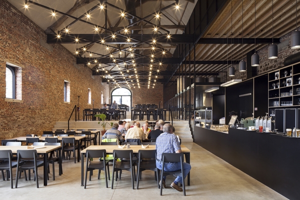 Leysner ontwerpt interieurs bijzondere lunchroom met werkatelier
