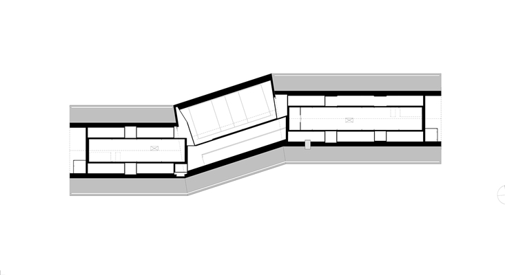 De schuine lijn in het ontwerp zorgt voor een optische opdeling, waarmee het gebouw aansluit op de schaal van de omgeving zonder ‘uiteen te vallen’. Doordat de gevel en het dak in één materiaal zijn uitgevoerd, krijgt de schuurvorm extra nadruk. Tegenover een eenvoudige basis qua vorm en opzet staat een zorgvuldige detaillering, bijvoorbeeld in de materiaalovergangen.