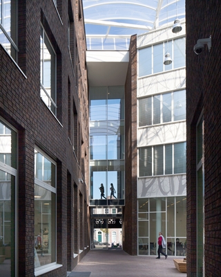 Het voormalige postkantoor is in de nieuwbouw ingepast en als zelfstandig pand herkenbaar. De verschillende bouwdelen zijn met elkaar verbonden door stegen en drie hoven, met ieder hun eigen functie en inrichting. Er is een hof voor docenten, studenten en het publiek (het atrium).