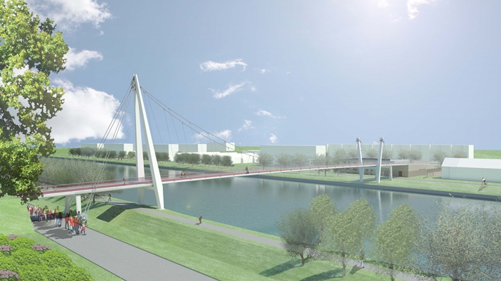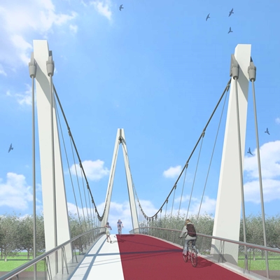 . “In een vloeiende beweging worden fietsroute, park en school samengebracht tot een samenhangend geheel van infrastructuur, bouwwerk en landschap”, verklaren de bureaus. Eind dit jaar is de Dafne Schippersbrug klaar, meldt NEXT architects.