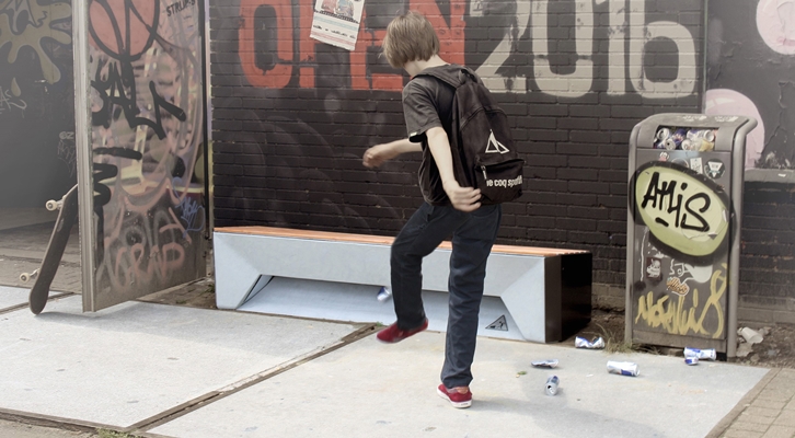 Hergebruik is een onontkoombaar thema, maar voor je kunt recyclen moet je inzamelen: een speelse manier is de Afvalbank van Wouter Vastenouw. Zoals de vangnetten langs de weg waarin automobilisten blikjes kunnen mikken, nodigt deze bank voor de buitenruimte uit om rondslingerend afval via een gleuf in het meubel te schoppen.