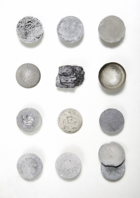 Lisa van den Heuvel zet natuurlijke materialen heel anders in: voor een gezonder binnenklimaat. Een hanger met kool filtert geuren en chemicaliën uit de lucht. Schalen bieden ruimte aan water en zeezout in precies de juiste verhouding; bij verdamping opent het zout onze luchtwegen en de poriën in de huid. En door water als regen te druppelen op grond in schalen, komen bacteriën vrij die ons immuunsysteem verbeteren. De serie hangers, schalen en attributen noemt zij ‘Aer’, adsorb, evaporate, release.