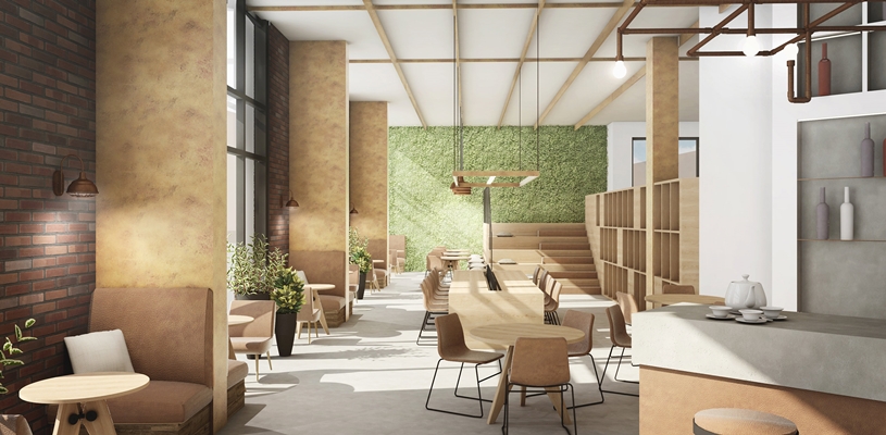 Het door archipelago ontworpen gebouw wordt omringd door groen, een conditie waarvan gebruik is gemaakt door veel uitzicht te creëren. Ook is op het maaiveld een colonnade gerealiseerd, die de overgang van binnen naar buiten verzacht.