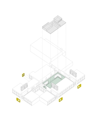 Bij het ontwerp voor de renovatie en uitbreiding heeft het architectenbureau gebruik gemaakt van de oorspronkelijke, heldere gangenstructuur. De gangeinden, die eindigden in toiletgroepen, zijn opengebroken. Daardoor zijn zichtlijnen naar de omgeving gecreëerd.