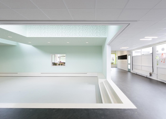 de Haarlemse basisschool Piramide Boerhaave meer licht, lucht en ruimte gegeven. Het project laat zien dat verbouw van wederopbouwscholen een volwaardig alternatief is voor sloop en nieuwbouw, aldus het architectenbureau.