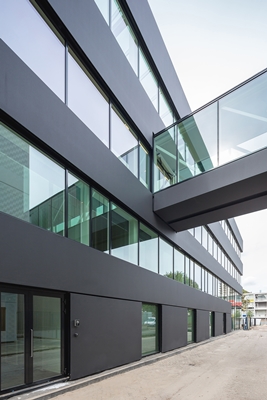 Het tijdelijke gerechtsgebouw heeft een strakke vormgeving met een terughoudende kleurstelling en verfijnde detaillering. De gevels hebben een strakke horizontale geleding van bandramen en donker getinte borstweringen met een buitenafwerking van gespannen kunststofdoek.