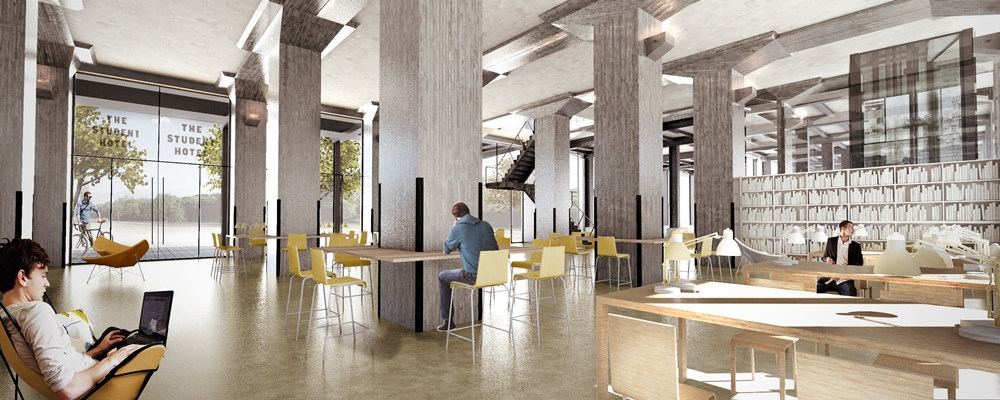 als architect betrokken. Naast de genoemde functies worden een binnentuin, een game area, lounges, workshopruimtes en werk- en studieplekken in het Rijksmonument gehuisvest. Ook komen er ‘class rooms’, in omvang en inrichting variërende ruimtes waar (bestuurs)vergaderingen en presentaties voor groepen tot veertig personen kunnen plaatsvinden.