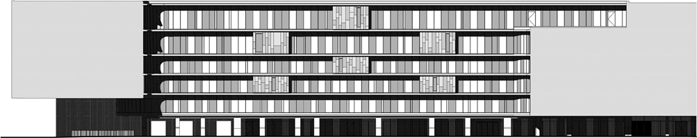 De gevelarchitectuur aan het binnenplein heeft dan weer een zachtere, transparante vormgeving. Dit zorgt voor een hedendaags en helder beeld. Het ruime binnenplein vormt het kloppend hart van de school, waar studenten, docenten en toevallige passanten elkaar treffen.