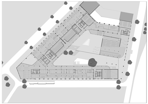 Het gezamenlijke ontwerp van de bureaus zette sterk in op de interactie van het complex met de omgeving. Daarnaast wilden Stramien en RAU een flexibel gebouw, dat verschillende onderwijsvormen zou toelaten.