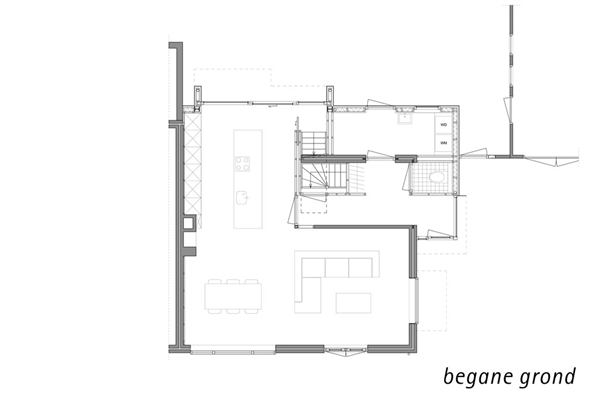 . De woning is opnieuw ingedeeld en voorzien van een contrasterende uitbouw die verrassend harmonieert met de omgeving.