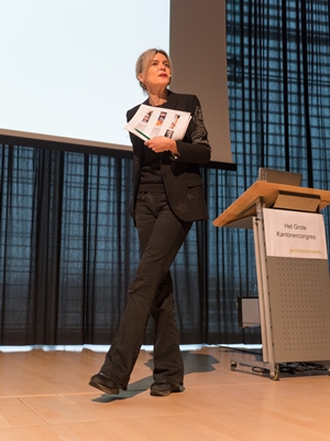 De noodzaak om regelmatig te bewegen tijdens de werkdag werkte onderzoeker Lidewij Renaud (VUmc) in haar lezing hierna verder uit. Zitten op zich is heel natuurlijk, het is het langdurige zitten dat zeer schadelijk is voor de gezondheid en in de wetenschap in verband gebracht wordt met allerlei ziektes. Ze benadrukte daarbij dat een half uur sporten ter compensatie van al dat zitten wel helpt, maar niet voldoende is. Om werknemers werkelijk gezond te maken en te houden, zou dat intensieve bewegen gedurende de dag aangevuld moeten worden met regelmatig bewegen.