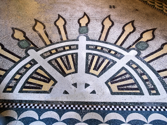 Het kunstwerk bestaat uit een plafond van 450 vierkante meter glasmozaïek, een ambachtelijk vervaardigde terrazzo vloer, reusachtige art deco spiegels en vergulde kroonluchters. Het plafond telt meer dan een miljoen tegeltjes, de zeven kroonluchters kroonluchters zijn gemaakt van recyclede en vergulde fietsonderdelen.