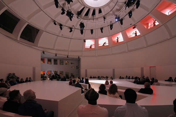 Via een spiraalvormige trap vinden de bezoekers hun weg naar boven in het cilindrische volume. De route naar boven biedt ze telkens wisselende perspectieven op de ruimte, plus extra zitplaatsen voor als er een tentoonstelling plaatsvindt. De cilinder wordt bekroond met een indrukwekkende koepel die is voorzien van een oog die daglicht binnenlaat.