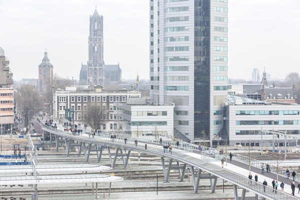 De gemeente Utrecht heeft sinds afgelopen vrijdag een fiets- en voetgangersbrug over de sporen bij station Utrecht Centraal. Het ontwerp van de Moreelsebrug is gemaakt door architectenbureau