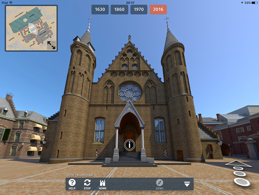 ontwikkelde app toont het Binnenhof in 3D-modellen in vier tijdvakken.