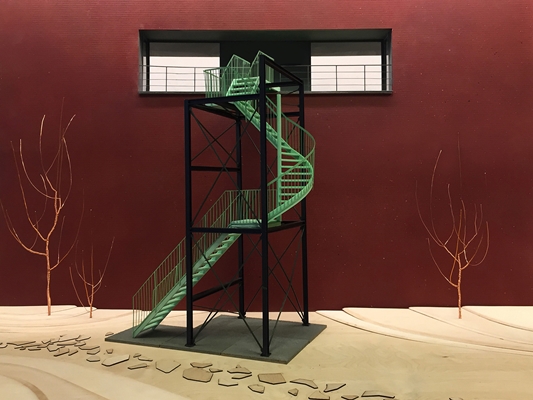 De assemblage van verschillende trapdelen refereert naar het postmoderne ontwerp van het oorspronkelijk Nederlands Architectuur instituut, meldt ZUS. Met de installatie wordt tevens de blinde gevel van het instituut en de aangrenzende openbare ruimte geactiveerd.