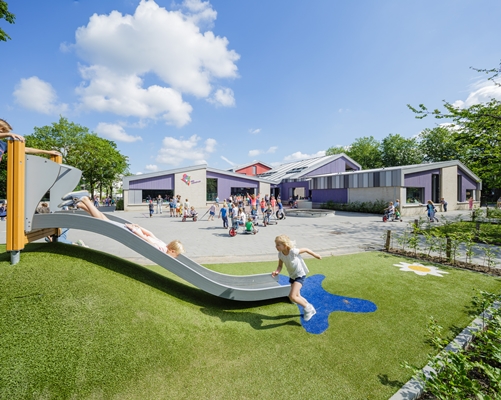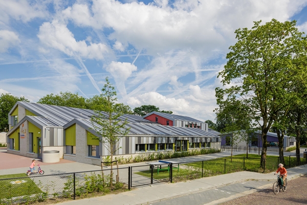 in gebruik genomen. Het gebouw biedt plek aan een openbare en bijzondere school, een peuterspeelzaal en een buitenschoolse opvang. Uitgangspunt voor het ontwerp was ‘het gebouw wordt een avontuur’.
