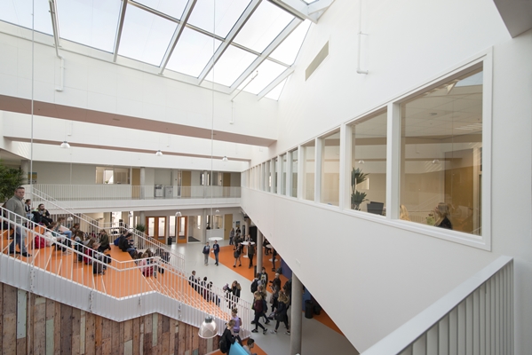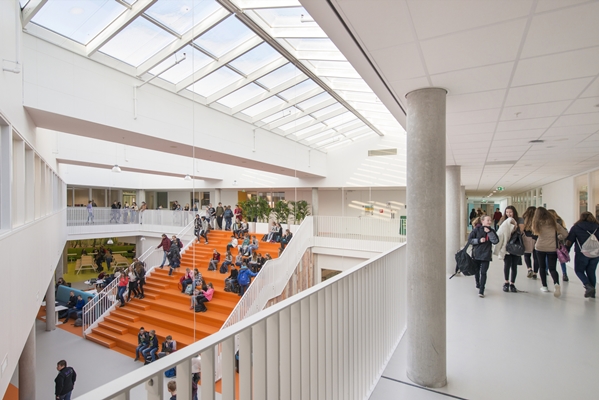 Ieder bouwdeel heeft centraal een vide die zorgt voor doorzicht en daglicht tot diep in het gebouw. Hier is ook ruimte voor verschillende soorten open werkplekken. In de uiteinden van de vleugels zijn ruimtes gesitueerd die rust en privacy behoeven en de meer kwetsbare leerlingen geborgenheid kunnen bieden.