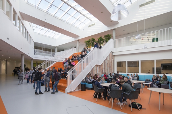 Omwille van de zonering en oriëntatie in het gebouw beschikken de verschillende bouwdelen over een eigen kleur en is er gevarieerd in de mate van openheid en transparantie. De kleuren zijn afgestemd op de doelgroepen en het gedrag van de leerlingen, meldt LIAG.