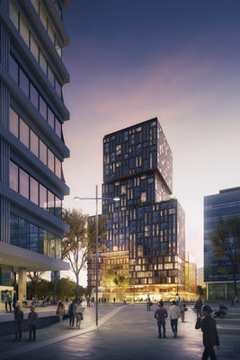 Het hotel, dat in het onderste deel van de toren wordt gerealiseerd, gaat 250 kamers tellen. Daarboven komen 330 woningen in het hogere segment vrije huur. De bewoners kunnen gebruik maken van de hotelfaciliteiten, zoals het zwembad en de fitness.