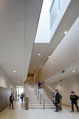 De structuur van de gebouwen is flexibel van opzet, met gemeenschappelijke (bijeenkomst)ruimtes, leercentra en mogelijkheden voor verschillende vormen van onderwijs. De speciale en gezamenlijk te gebruiken ruimtes, zoals de centrale hal en de multifunctionele ruimte, zijn door middel van materiaal, kleur en lichttoetreding vormgegeven als de dragers van het gebouw.