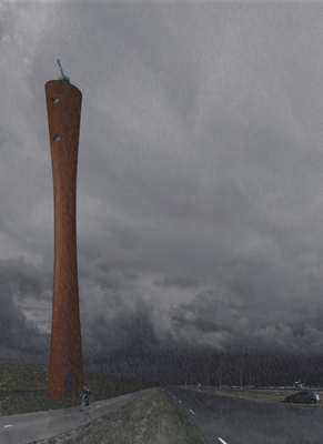 een nieuwe radartoren voor Maasvlakte 2 ontworpen. De toren heeft een slanke taille en staat met een stevige voet op de zeewering.