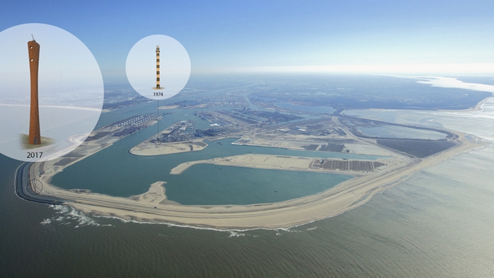 . Op een nieuwe locatie, de Prinses Maximaweg op de zeewering van de Maasvlakte 2, komt een zeventig meter hoge en slanke toren.