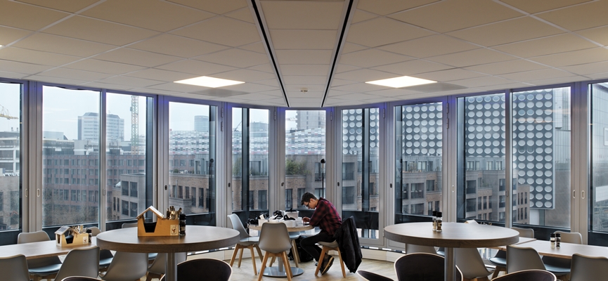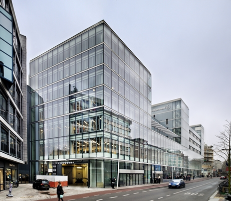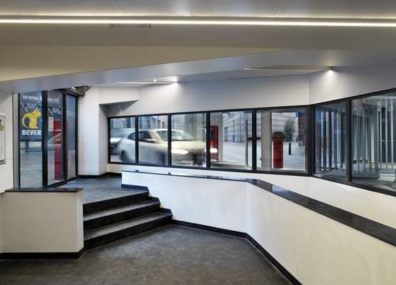 Op de bovengelegen verdiepingen zijn ook de kantoren duidelijk afleesbaar. De bestaande kantoorpuien zijn gehandhaafd, maar de kantoren zijn wel voorzien van nieuwe borstweringen met geëmailleerd glas, passend bij de uitstraling van de verglaasde gevel van het gehele complex.
