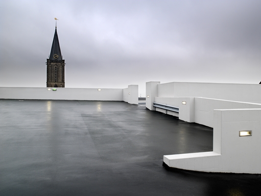 Het complex is tevens voorzien van twee daktuinen, die zijn ontworpen als een grassenlandschap met lichte glooiingen en vlakken. Luchtbehandelingskanalen die op het dak liggen, knikken meet in het grafisch patroon. Op de kanalen zijn ‘mieren’ van rvs geplaatst, die een spoor van de ene naar de andere kant lijken te volgen. ’s Avonds licht het mierenspoor op.