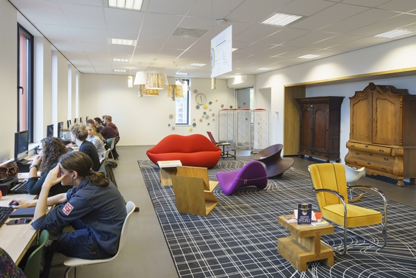 Het interieur is tot stand gekomen in interactieve sessies met docenten en studenten. Er is volop geëxperimenteerd met technieken in hout, metaal, textiel en dergelijke, vertelt het architectenbureau. Hierdoor geeft het interieur uitdrukking aan het ambachtelijke en creatieve karakter van de school.