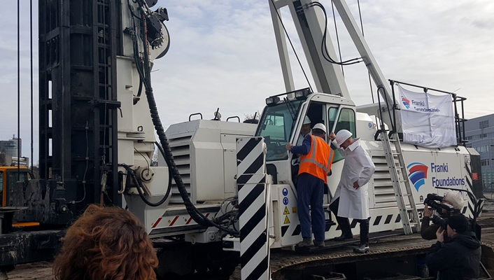 Burgemeester Aboutaleb schroeft de eerste paal de grond in