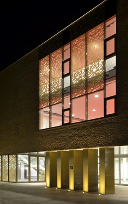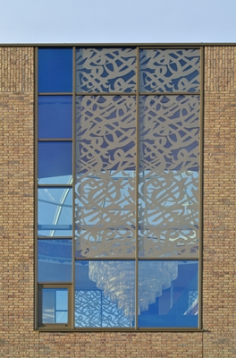 Het architectenbureau heeft bijvoorbeeld gebruik gemaakt van gezeefdrukt glas, waarvan het patroon is geïnspireerd op het Arabische schrift. Ditzelfde patroon komt terug in de toegangspoort en op de minaret.