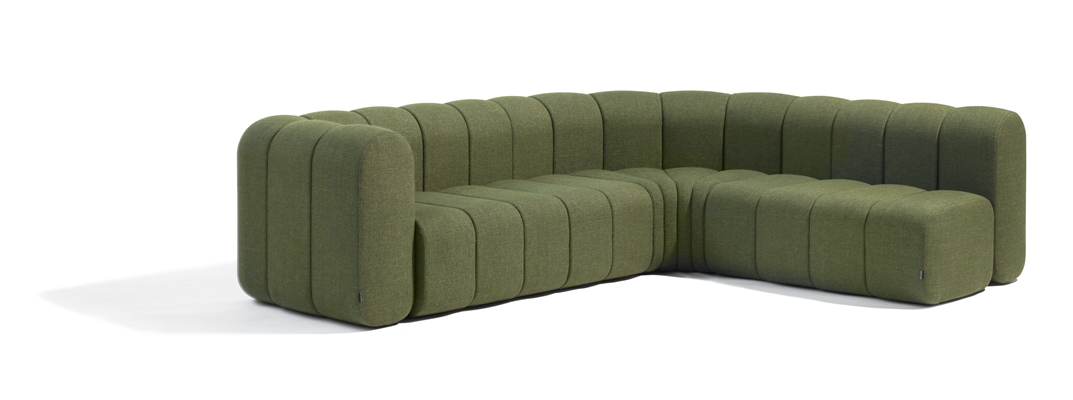 Het team van Front is verantwoordelijk voor de bank Button; de stoffering is gecapitonneerd met, inderdaad, grote knopen. Daarmee kunnen tegelijkertijd diverse accessoires worden vastgemaakt, zoals een hoofdkussen, een tafelblad of een gevlochten mandje bij de armleuning. Het mandje is overigens handwerk volgens een eeuw oude traditie, gevlochten door een kleine gemeenschap in midden-Zweden.