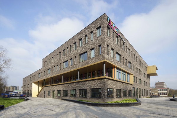 een gemeenschappelijke hal ontworpen met een spectaculaire trappenpartij. Op dinsdag 4 april 2017 is de school officieel geopend.