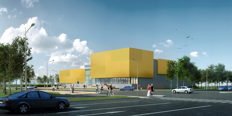 Het gebouw komt langs een van de toegangswegen tot het centrum te staan en krijgt mede hierom een prominente uitstraling, die vooral te danken is aan de zwevende ‘gouden’ volumes boven de glazen plint. Met een lager bouwdeel wordt de aansluiting gezocht bij de omgeving, meldt LIAG. Het interieur krijgt een ‘warm’ en uitnodigend karakter, met veel zichtlijnen tussen de functies.