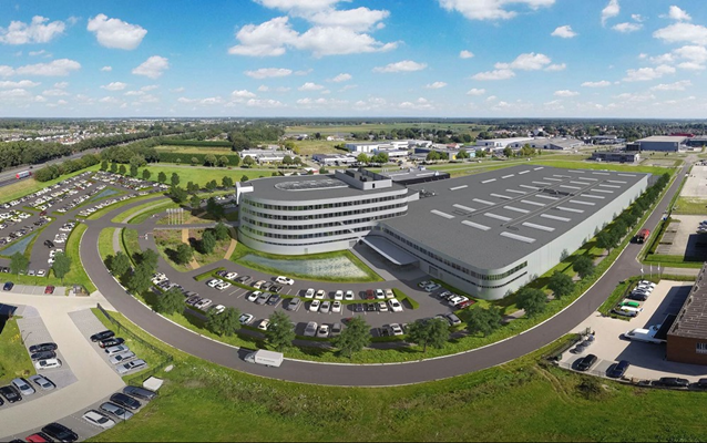 Om de impact van het honderdvijftig bij honderdvijftig meter grote gebouw enigszins te beperken, heeft Paul de Ruiter Architects het parkeren op het dak gesitueerd. Via een ronde patio dalen de werknemers vanaf daar af naar een niveau lager, waar zich de hoofdentree bevindt, met de kantoren en kantine van het bedrijf. Op het voorterrein van het gebouw ontstond zo ruimte voor de – naar eigen zeggen – grootste vlindertuin van Europa. De vuilopslag even verderop is voorzien van een hoge groenwand en plekken waar vogels zich kunnen nestelen.