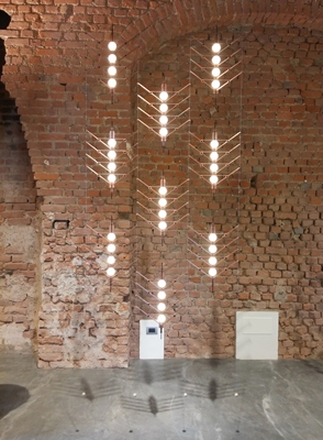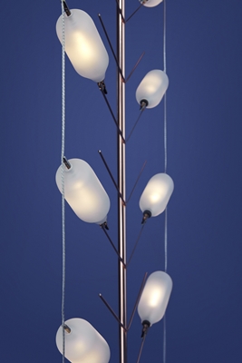 Terwijl de hanglamp met een semi-transparante kap nog enigszins conventioneel oogt, zijn het met name de armaturen in de vorm van een gordijn en een boom die de mogelijkheden met led en laag voltage laten zien. Het resulteert in een sobere, ‘naakte’ en zekere industriële esthetiek.