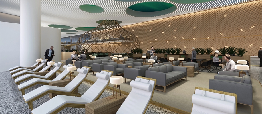 De business lounge wordt gedomineerd door een aantal grote uivormige objecten, waarmee M+R verschillende zones creëert. De lounge biedt zitplaatsen voor verschillende activiteiten - in totaal zo'n vierhonderd stoelen. Voorts wordt de ruimte voorzien van dynamische verlichting, die zich aanpast aan de hoeveelheid daglicht.